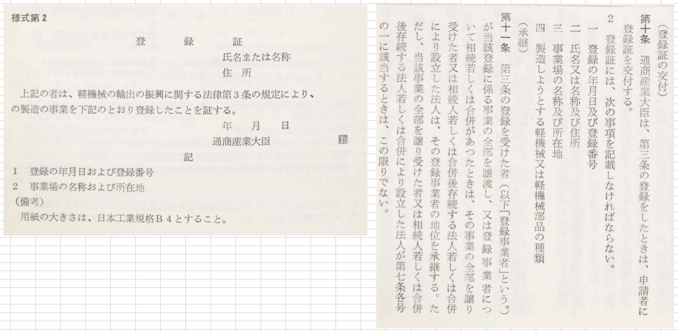 「軽機械の輸出の振興に関する法律」に基づいて製造業者に登録を届けさせたものです。
