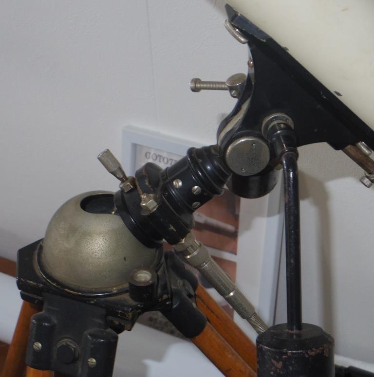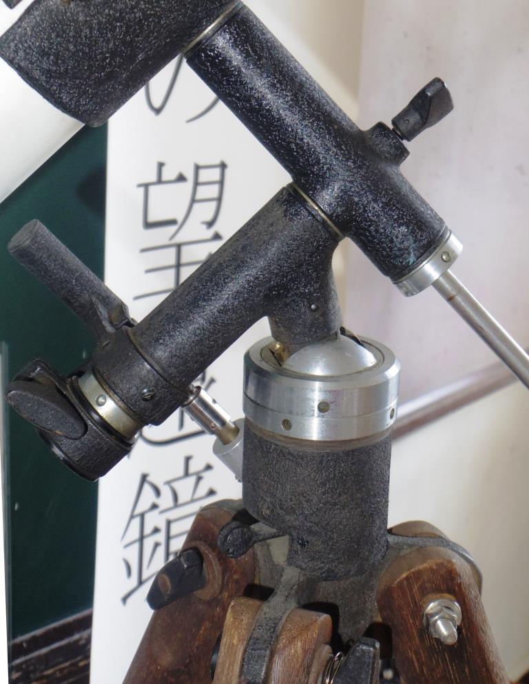 ボールヘッドに見える望遠鏡は、博物館に、五藤光学のエロス号、日本光学の2インチ(5cm)の簡易赤道儀、2.5インチ(65o)と3台置いてありますが、どれも垂直方向はガイドに沿って上下するようになっており、首を傾げることはありません。