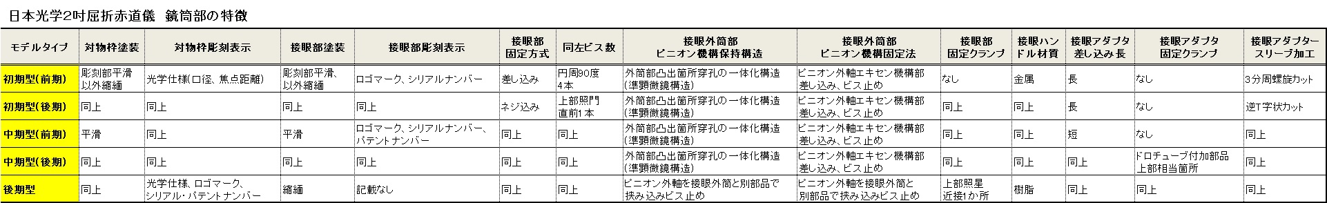 Aについては、年月がはっきりした鮮明写真が載ったカタログあれば、分かってくると思いますが、年月が記載されてないものが多いです。ただ科博のN先生から、2吋鏡筒には5種類あるとの情報を頂きました。