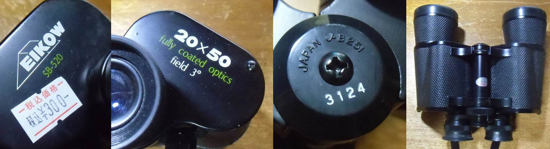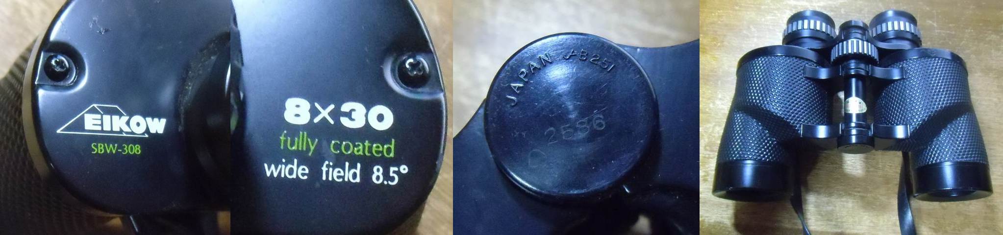手元の双眼鏡を調べるとJB251(Toho Optical Mfg. Co., Ltd., Tokyo)がありまして、 一台目がエイコーのSBW308(1979年カタログで16000円)8x30 8.5度でボシュロム型というものでした。 もう一台がSB520(1979年カタログで16500円)20x50 3度。 両者とも接眼レンズの反射光は複雑で空気界面は6面ありそう(エルフレ系と思う。同時期のケンコー20x50は2-1-2枚のエルフレだった。) 8x30はプリズムの陰りがぎりぎり出るか出ないか?という所で、屈折率の高いプリズムを使ったのか?対物Fをやや暗めにしたのか?もね?という感じ。アドラブリックが出るより相当前で、ニコン以外のCF非防水双眼鏡では高屈折率プリズムが普及する前ですね。意外と普及機+αくらいの製品を作ってたのかも。