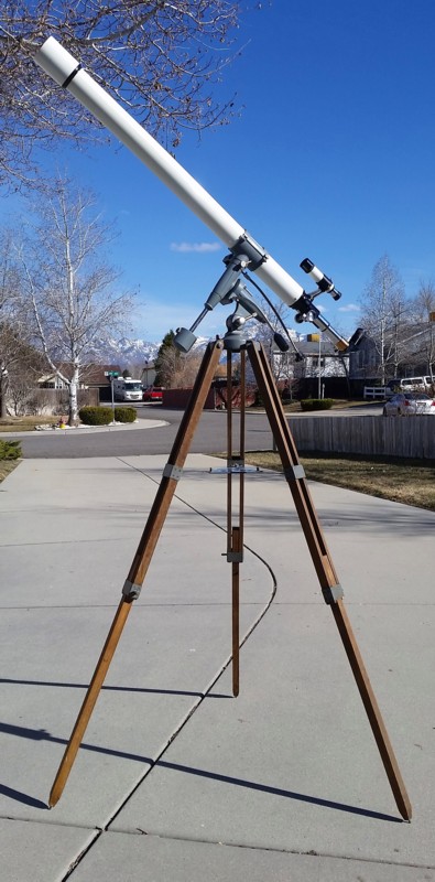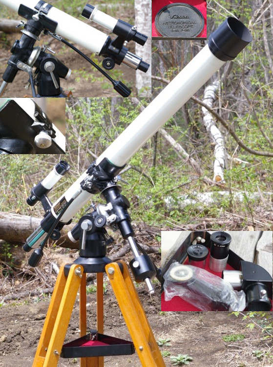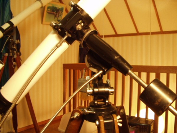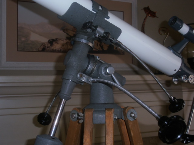 私の望遠鏡ですが、2台並んだもう一方の物は1980年代の新しいタイプです。 マウントと三脚が頑丈になっています。