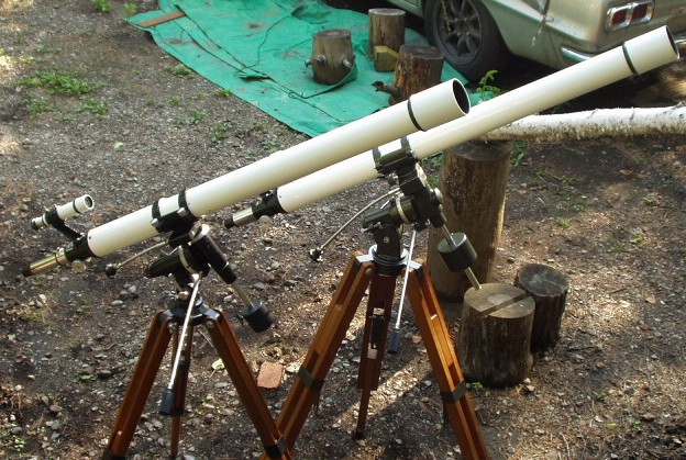 画像、左は五藤75mm赤道儀、右がアストロR-61D赤道儀です。