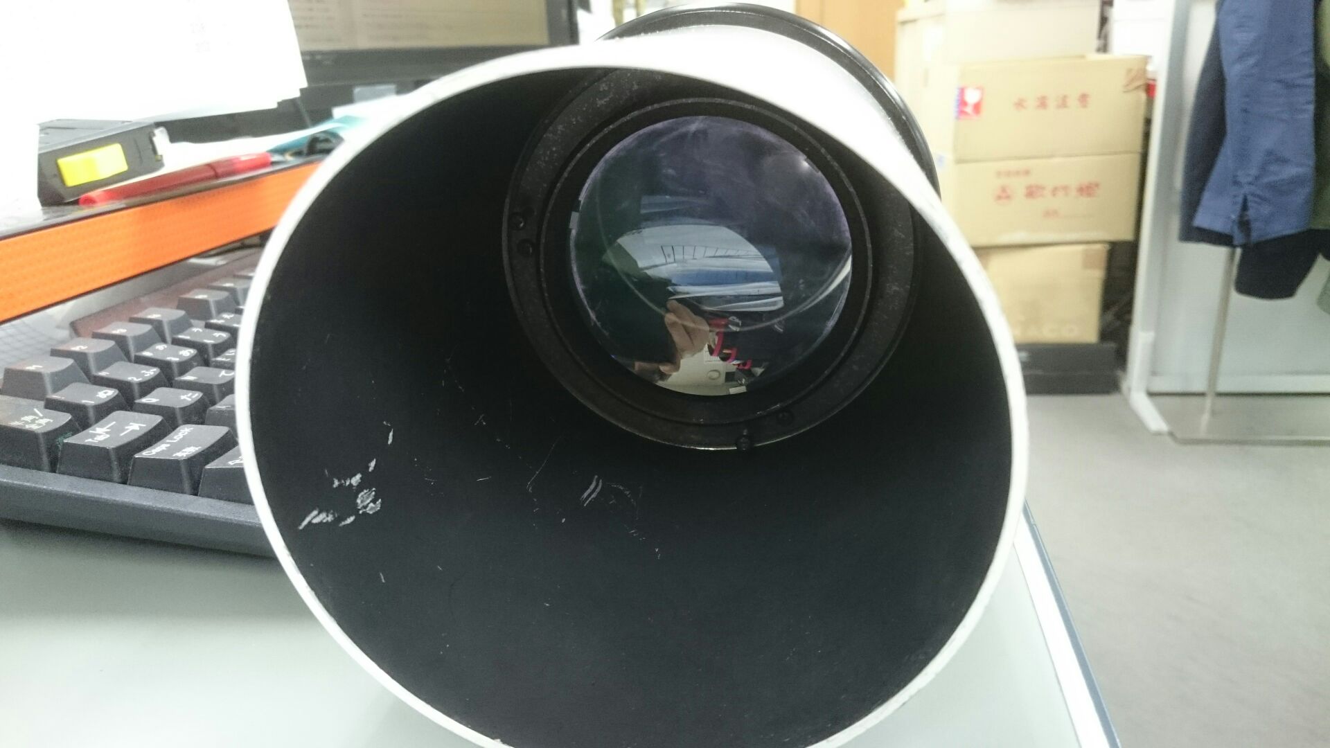 昨晩球面収差の酷さを写真にしようと月やオリオン星雲や木星を狙いましたが、なんと、直焦点ではピントが来ませんでした。まあこんなに短くても写真鏡とは謳ってませんので非難は出来ませんが、眼視も写真も使えない、まさに見た目だけのハッタリ望遠鏡です(笑