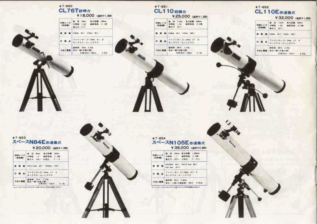カートンの反射はCLシリーズの方が早いですが、小島式の旧スペース型赤道儀のモデルがなく、一応この105Eもスペースの名はつきますが、すぐ新スペース型赤道儀100Eモデルに移行しました。