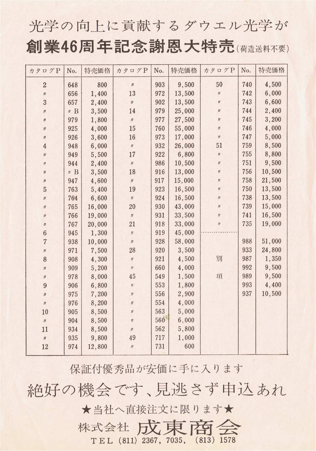 確かに、私はひどいものを買いましたが、このカタログには確かになんとなく”光学品の普及を使命としている”というポリシーを感じます。