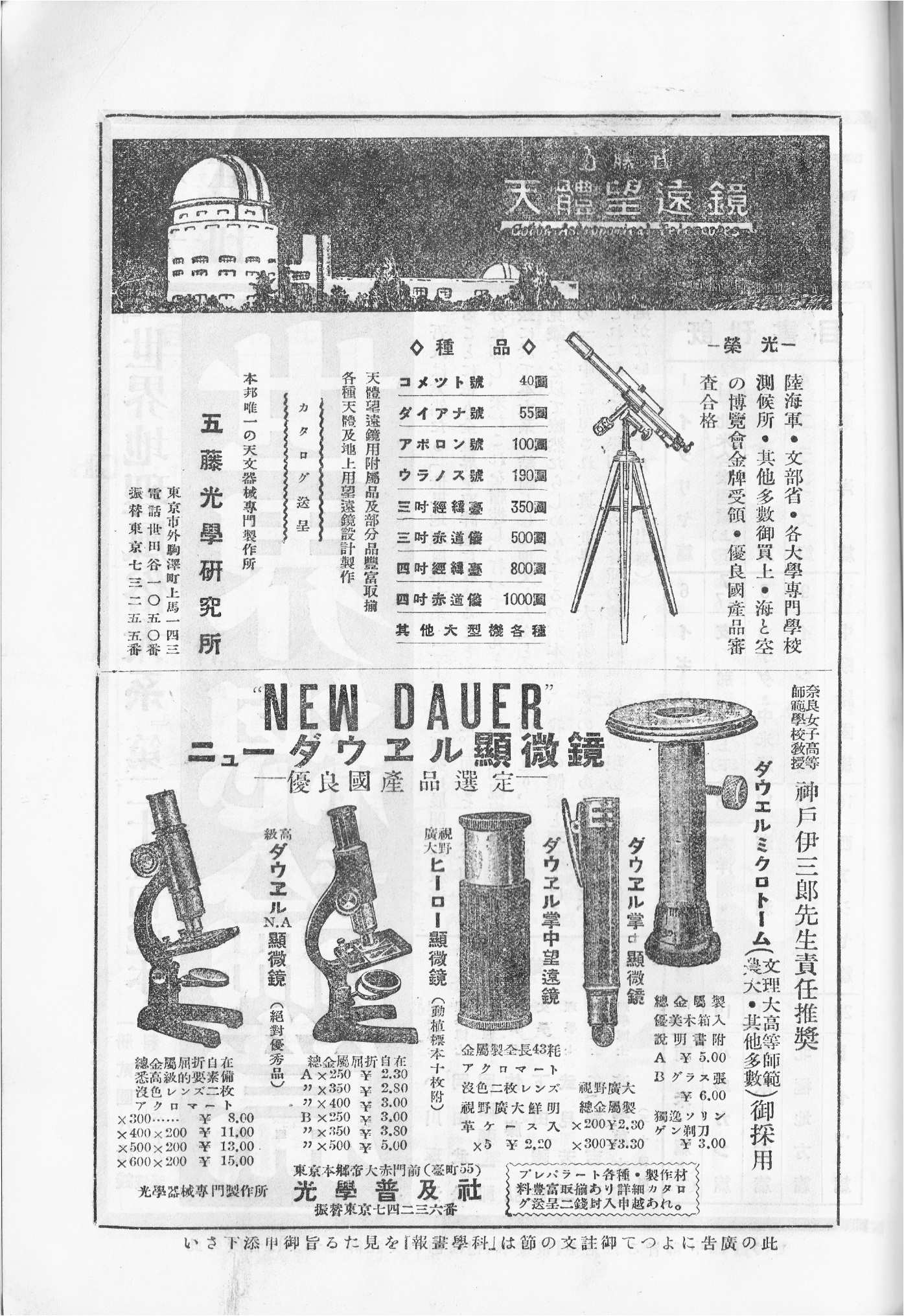 それにしても、左の広告はナント五藤光学と同ページです。たいしたものです。