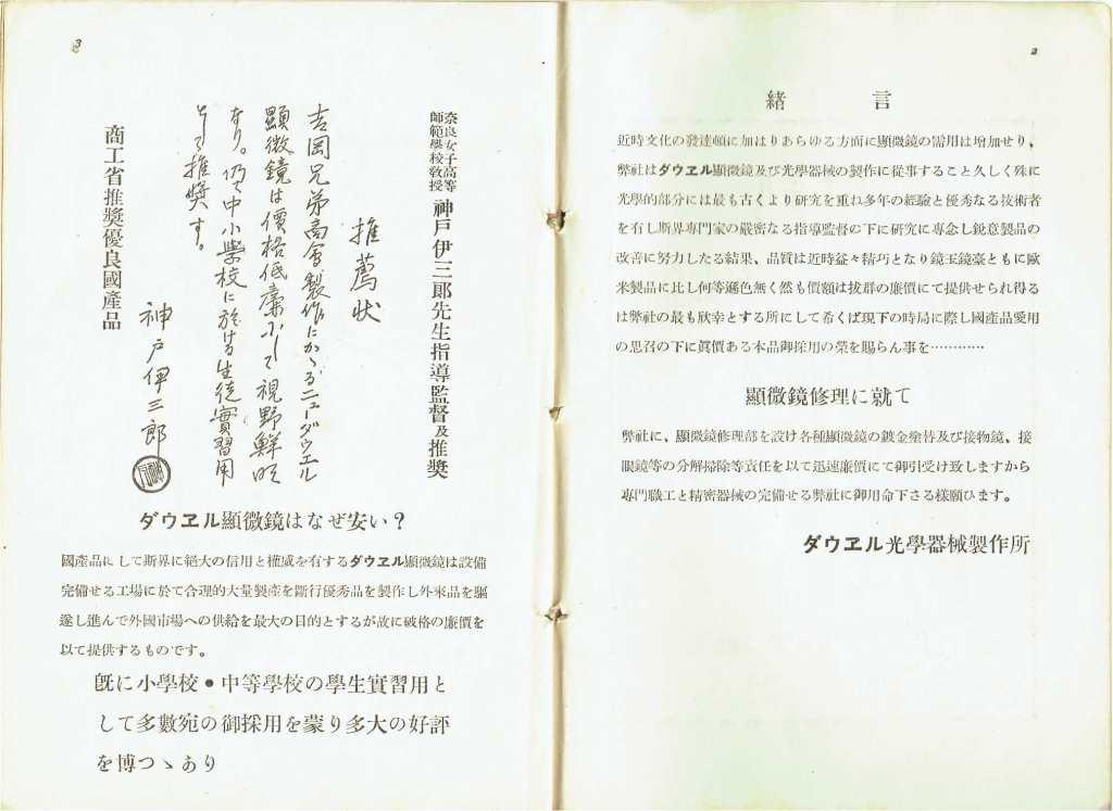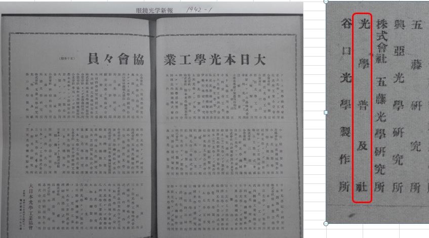 ただ、カタログには「ダウエル光学機器製作所」「光学普及社」「吉岡兄弟製作所」「日本光学研究所」等の名前が出てきますが、関係がよくわかりません。