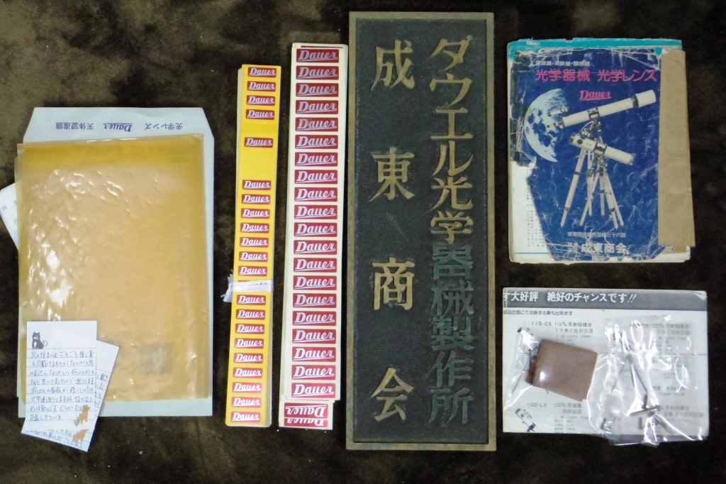 ダウエルDAUERのスペルの意味ですが、ネットの自動翻訳機能は不十分です。単語の意味は複数あることが珍しくありません。このケースも「期間」と類似した「継続」。そこから転じた「信頼」といった意味を併せ持っています。世間では50年間続かない企業が多い中、数十年以上事業を継続していれば「継続は力」で「信頼」と言って良いかも知れないのですが・・・ミラーと架台は信用できないなあ・・・アイピースは使えますし、レンズも意外と見えて驚く(ガッカリする?)のですが。