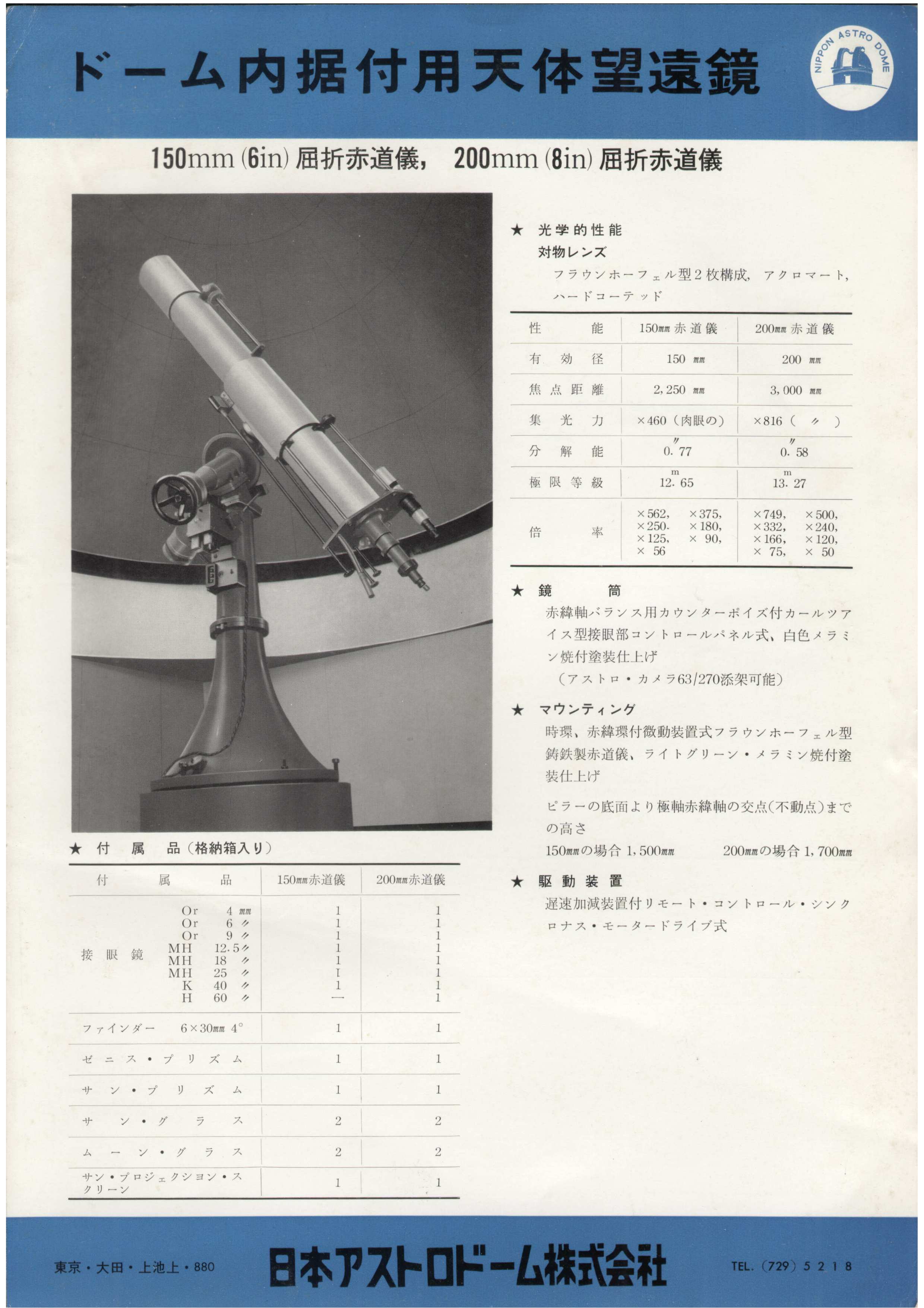 確かにこの当時は20p(f12:2.4m)は東京光学の銘のほか、赤道儀は府中光学(現五藤光学と思います)の銘が