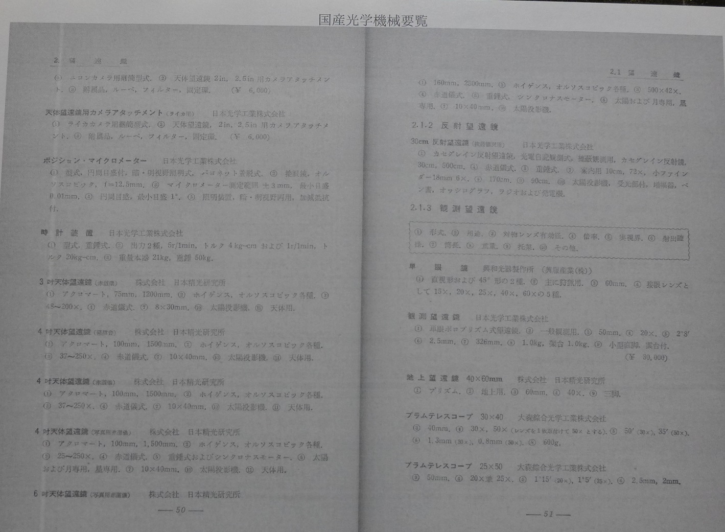 ただ、この時期ミネルバ光学、関西光学、西村製作所、ダウエル、日本精光研究所等、天体望遠鏡を製作していた筈ですが、載せていなかったとのことですね。