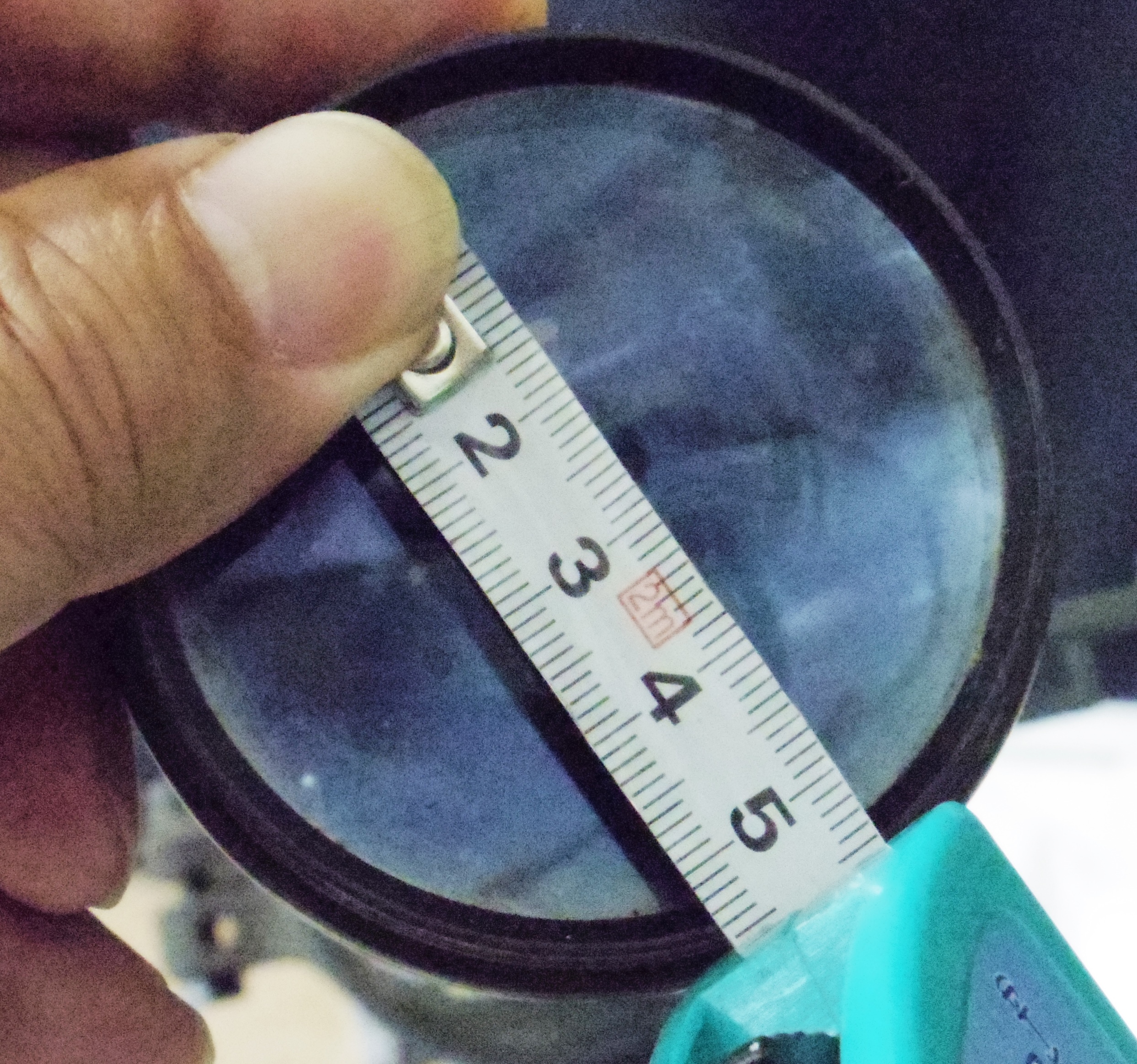 このスレで青色つきこさんがご紹介頂きました50oの望遠鏡。今回の望遠鏡の対物レンズを計ってみました。