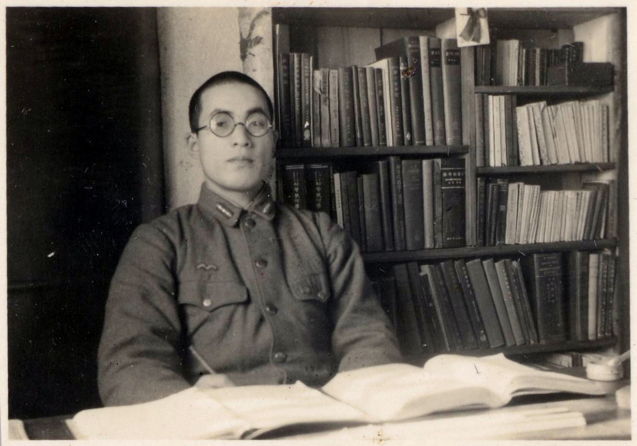 さて、写真はまた戦中に戻ります。 左は軍曹に進級した記念。ペンで修介氏直筆の説明があります。 右は服務の様子です。(襟章より曹長です) 後ろの本がどういった内容のものか見えないのが残念です。
