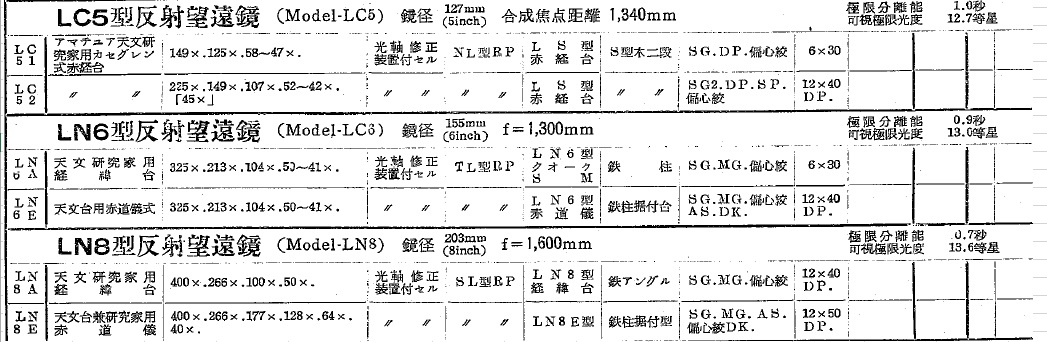 赤道儀はLN6Eの後期型とかR82型と同じと思っておりましたが、それとのセットは探しつけませんでした。 なるほど、でした。 |