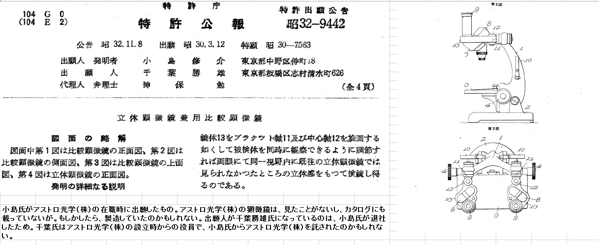 小島氏は、旭光学工業時代に、アストロ光学(株)設立へのきっかけをもったと思います。 米国へのアストロ光学(株)の輸出を手助けした存在と、この時期に会っていると思います。 また、アストロ光学(株)の設立メンバー、下請工場、後援者に会っているはずです。