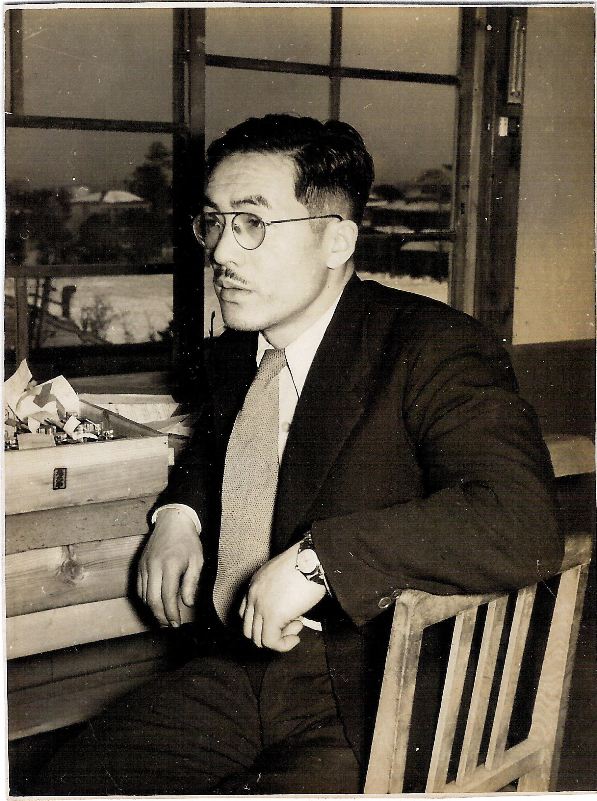 *修介氏の写真はご遺族のもとには驚くほど残っておりませんでした。 修介氏は会社人間で、ほとんど家にいなかったとおっしゃっています。 昭和26年 五藤光学を退社し、アストロサービスセンターという個人会社を設立して、 望遠鏡を担いで地方をまわって啓蒙活動をしたり、望遠鏡の修理をしたりし始めた頃、 野尻抱影先生に同行して仙台の七夕祭りを訪れた時の写真です。