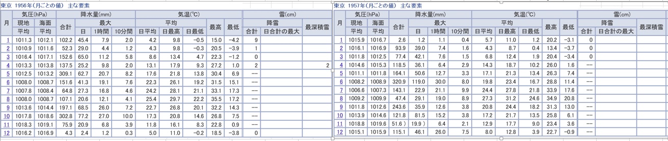 エド様、写真の雪景色からすると1956年1月〜4月かも知れません。 気象庁の過去の記録をみると、1957年は降雪は記録されていないようです。