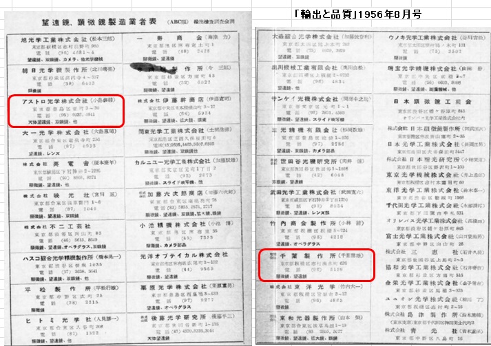 プレ・アストロ光学という呼び方はすこぶる当を得ていると思います。 五藤光学での人脈、下請工場とは全く違う関係を開拓しないと会社が興せないので、 当時勃興し始めた板橋光学エリアのド真ん中にある旭光学に入社したのは小島氏の戦略的な匂いがします。 もちろんご推察のとうり、輸出関係の人脈もしかりと思います。 そして、前スレで出てきた“合理的カルテル”へと繋がると考えます。