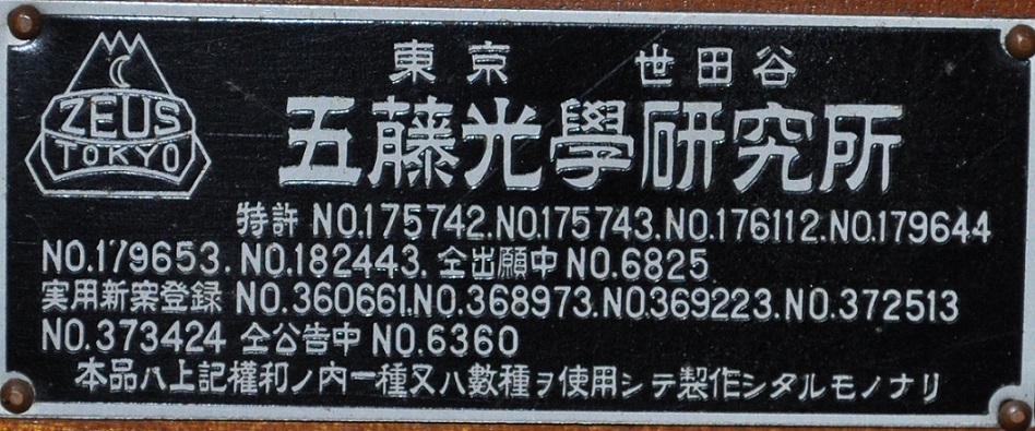 おはようございます。NGC1099さん、そしてみんな。 ブラックユニットNo.3のケースラベルを見せてくれてありがとう。ラベルは世田谷が言っているので、ケースラベルは黒ユニット3番が昭和7年(1932年)から昭和12年(1937年)であることを示します。 昭和13年(1938年)から昭和16年(1941年)になるには、「後藤光学研究所」の前に「株」という文字が必要です。 戦後後藤はラベルに特許保護情報を追加しました。 そのため、Black Unit No. 4のケースラベルはZeusのロゴで、ラベルに特許保護情報が記載されています。 児玉氏は、ブラックユニットNo.4のケースラベルを取り扱っていない。五藤は昭和17年(1942年)から昭和20年(1945年)まで望遠鏡を製造・販売しましたか? 私はそうは思わない。 後藤が望遠鏡の製造と販売を再開したとき、私は昭和22年(1947)だと思います。 そしておそらく米国の占領のせいで、特許保護が必要でした。 だから私は上記のチャートを考慮する必要があると思います。 私の考えでは、ブラックユニット3番は昭和13年(1938年)より古いです。