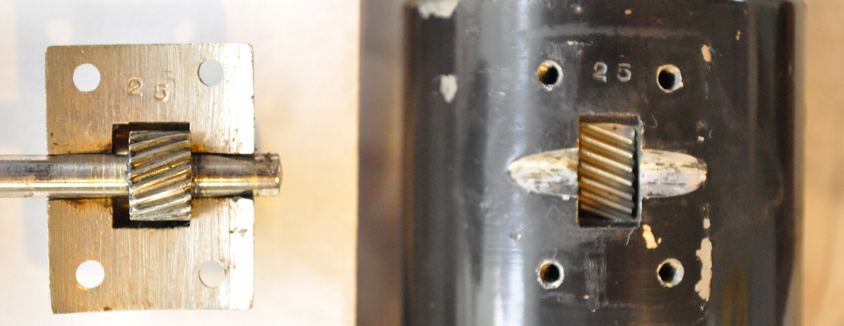 Stewさん、みなさん こんにちは 私の黒色4号機の部品に刻印された番号は、02に見えます。 この番号は、いわゆる機種ごとの通しの番号ではなく、ある時期に工場内で組み立てる際に、良い組み合わせを見つけ、他と混じらないように付けたのではないかと思っていました。それとも、ロット毎に付けたのかな?どうなんでしょうね? 先のNo.11726で「昭和28年から29年(1953〜1954)の製造」と書きましたが、星空の逸品の写真の表と少し異なっておりました。Stewさんのおっしゃるとおりだと思います。もう少し古かったことが判りました。有り難うございました。 画像は、黒色4号機の部品に付けられた合番とフードとキャップです。