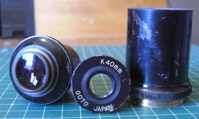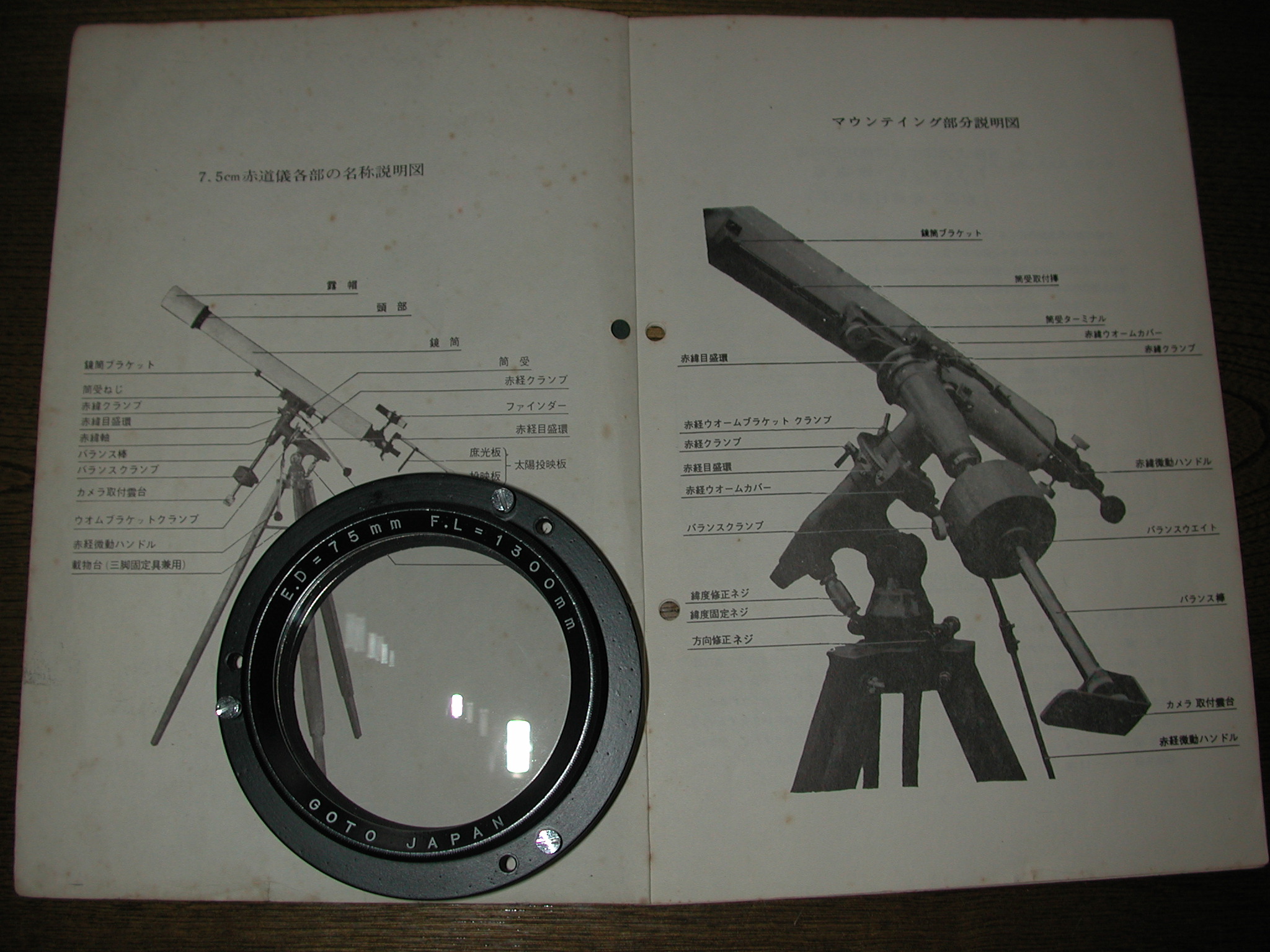 青いげっ歯類さん、Galakumaさん、そしてみんな。 おはようございます。 小島さんの仕事の歴史を教えてくれてありがとう。 小嶋氏は五藤 Opticalを昭和26 年(1951)に残しました。 エロスのふたの上の指示書は小島氏イニシャルを持っていなかった、それで彼はもはや昭和26年5月にそこにいないことを支持する (5.1951)。 小島氏は望遠鏡とマウントを作り続けるでしょう。 五藤 Opticalと競合します。 小島さんと五藤さんの間の個人的な議論ではないでしょう。 しかし、ビジネス競争は特許保護を必要とします。 ラベルの数字で積極的に保護を追求することが必要です。 学校の望遠鏡のLittrowレンズは、コマのない狭い視野を持っています。 Littrowレンズは惑星や二重星に最適です。 観察用接眼レンズはペンタックスSMCオルソスコープです。 Binoviewerが使われたので、接眼レンズのペアが使われました。 Zeiss moncentricとTMB monocentricは以前所有されていました。 ペンタックスSMCオルソスコープは現在使用されています。広視野接眼レンズはペンタックスXLとTelevue Panopticです。 五藤 Opticalの一軸接眼レンズの絵を投稿できますか