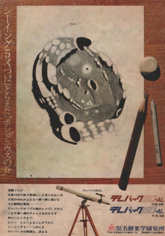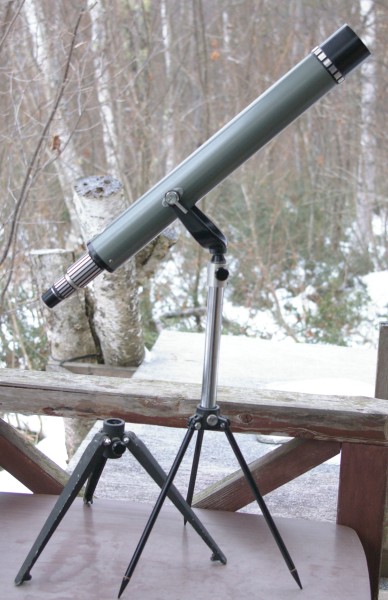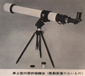 ガラクマさん、よくこんな古い写真発掘してきましたね! 昭和44年の五藤光学の広告に書いてあったのはまさにこれ!! 今初めて見ました。ありがとうございます。 こんな小さな望遠鏡でも、当時は高価な物だったのでしょう。 手抜きがなくしっかり作り込まれている感じですね。