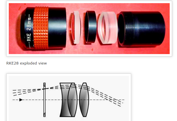 青色つきこ様 皆様 おお〜日本精光もそんな広告写真を使っていたなんて(なんかフラミンゴの大群という趣ですね)。 そういえば米国でのユニトロンの広告でも、ズラッと並べた写真を使っていました。 好きなんですね、そういうのが。。。まあ、売るほどあるのでご心配なくと。 偶然、本日、エドモンドのRKEが届きました。 RKEはその赤丸のレンズと全く同じレンズ構成ですが、どのレンズ面にも平面は使っていないんです。 カメラレンズでは3枚構成なら“トリプレット”と呼んだりしますが、ひょっとしてプレーン=飛行機? ハイアイですので、戦闘機の照準望遠鏡の接眼レンズで使用? RKEもハイアイで、いんげん豆効果も無いのでこの用途にはうってつけです。 半分冗談ですが、、、