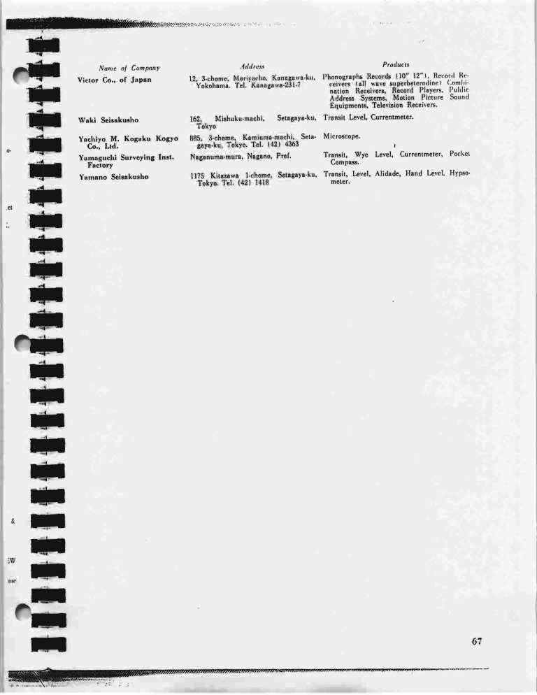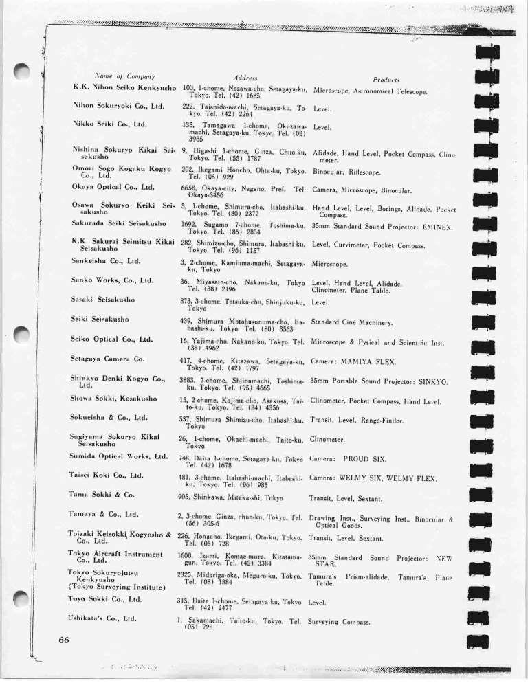 ガラクマさんの提示されたその会社リストを見ると、測量器のメーカーがたくさんあったことがわかります。 これらの住所もまた興味深いですが、板橋の光学エリア内ではないことが伺えます。 |