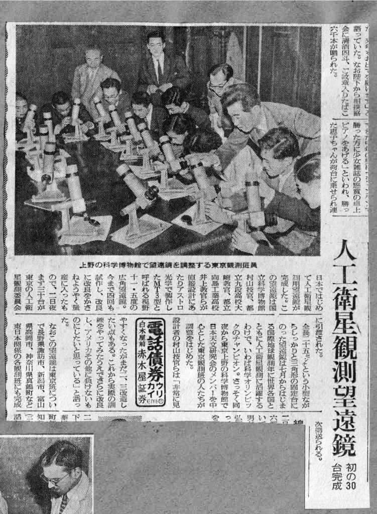 ソ連のスプートニクが打ち上げられて人工衛星観測網が緊急に整備されていった 時期で、人工衛星用望遠鏡の需要が高まったとも思うのですが。 しかし、アストロ光学(株)の経営は厳しかったのでしょうか。 人工衛星用望遠鏡は、米軍の払い下げ品や日本光学製、五藤光学研究所製、ユニ トロン製もあり、競争もあったと思います。 (ガラクマ様のムーンウォッチ計画ネタで出てくるのかと、思いますが。)