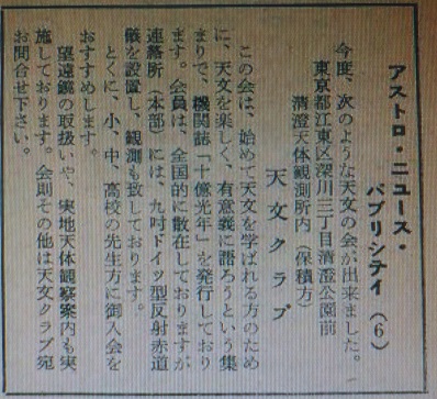 追記@ 第三のアストロ光学(株)については、エド様が適格に年表にまとめております。 私は第三のアストロ光学(株)=アストロサービスセンターと考えておりますが、 掲載広告からの推測です。なお、補強事項をひとつ記しておきますねぇ。