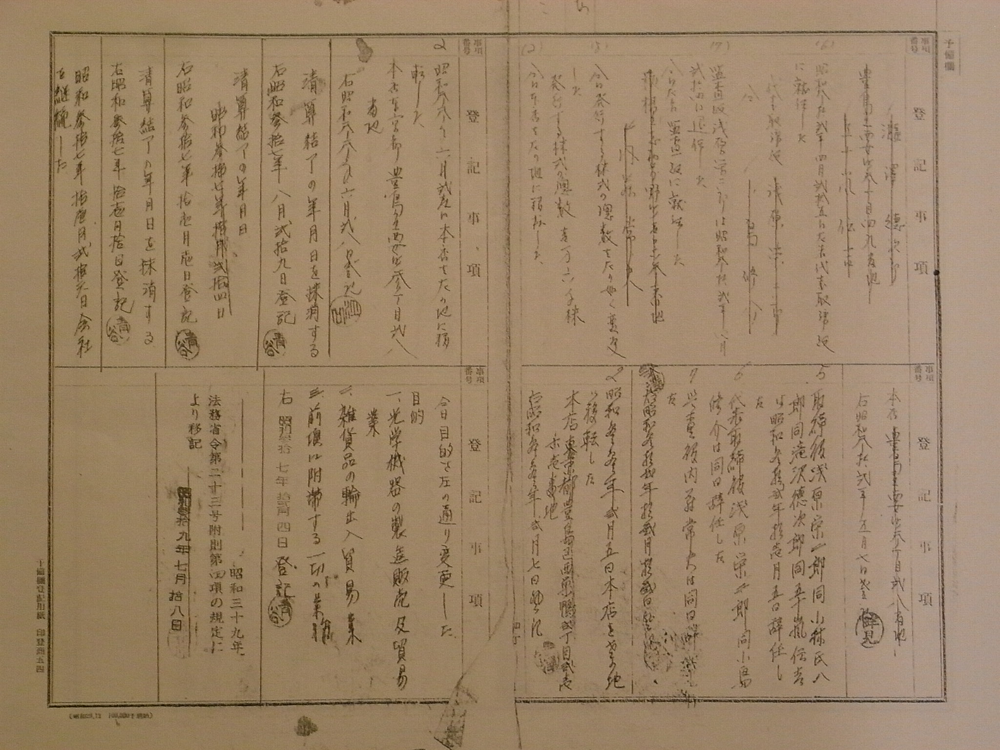 年表を下記のようにつくってみました。 年表をつくるにあたって、もう一度登記簿をルーペで読み直しましたところ、面白い発見もありました。