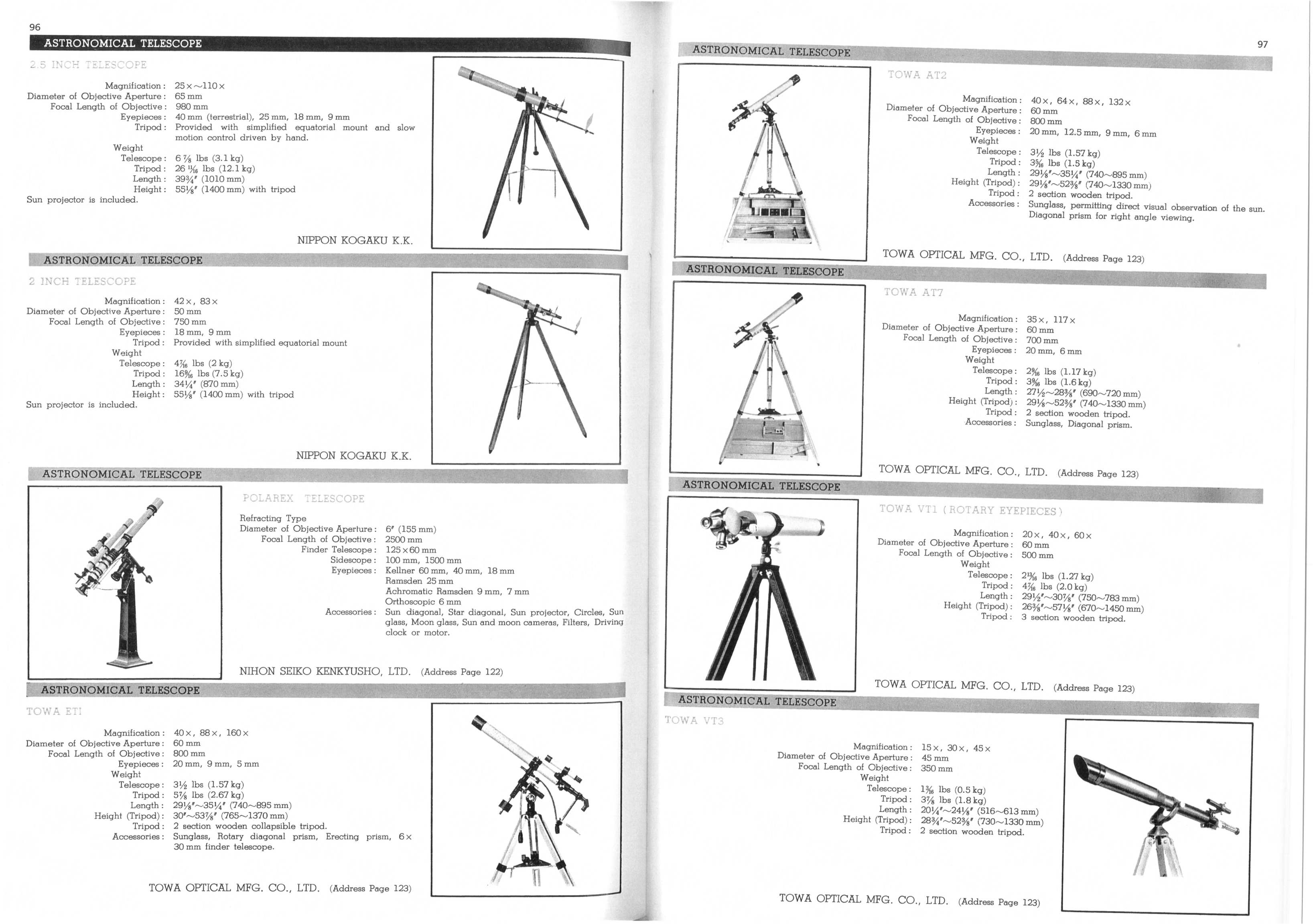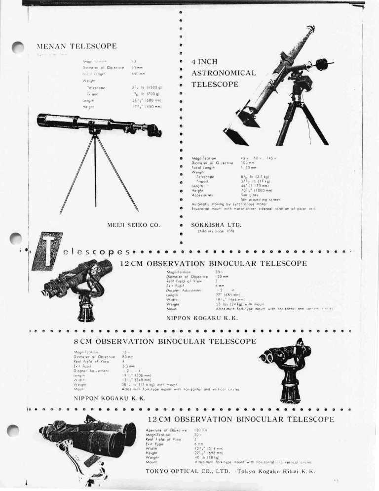 ・会社の沿革、望遠鏡はいつ頃からいつ頃まで作られていたか、または販売していたか。    等々