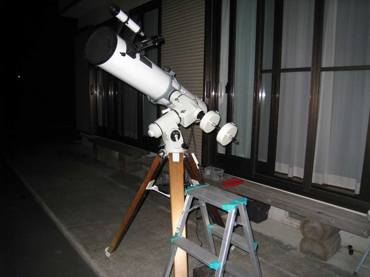海猿様 出し入れは大変です。従いましてこの部屋から出さずに窓から見えるものだけをターゲットにしています。ガラクマ様のご指摘通り、小型のスケールアップのような感じですが、結構がっちりしています。NGC1999様 うしろのものは、タイタンではなく、サターンP102Lです。こちらも出し入れが大変でもっぱら窓からの観望に使っています。