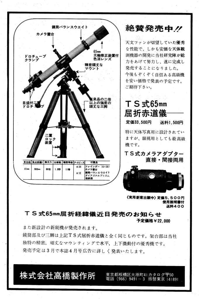 高橋喜一郎氏はこの初代TS65の時点ですでに自社望遠鏡を直焦点の望遠レンズとして使用することを主眼に置いていたのではないかと思います。