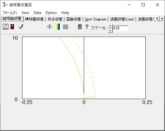 有効径30mm(F33)にすると単色光(d線)では中心のスポットダイアグラムが直径0.002mmぐらいになります。