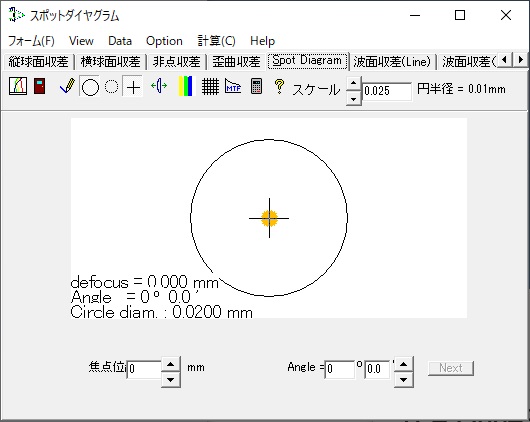 計算頂いたスポットダイヤグラムを見ると、0.02oのダイヤフラム内の集光分布が