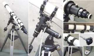太いドロチューブ、土星型にぎりのフレキシブルハンドル、高橋製作所最初の65o屈折赤道儀似の赤道儀。