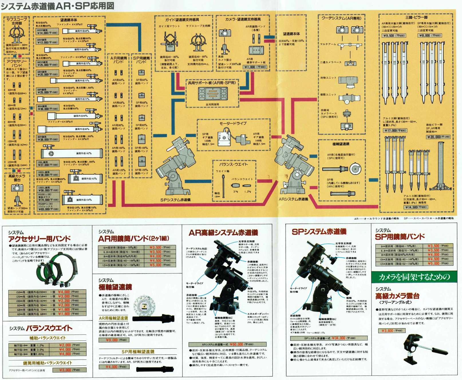 ところで「システム式の赤道儀」は、五藤のマークバツとの特許云々問題があったとか? あ〜それは、カートンかな??? でも、AR‐1は赤緯軸を外せなかったので、システムとしてはイマイチでしたね。 伸縮式ではない三脚は頑丈で、今はビクセンのDP-Dの赤道儀に流用しております。