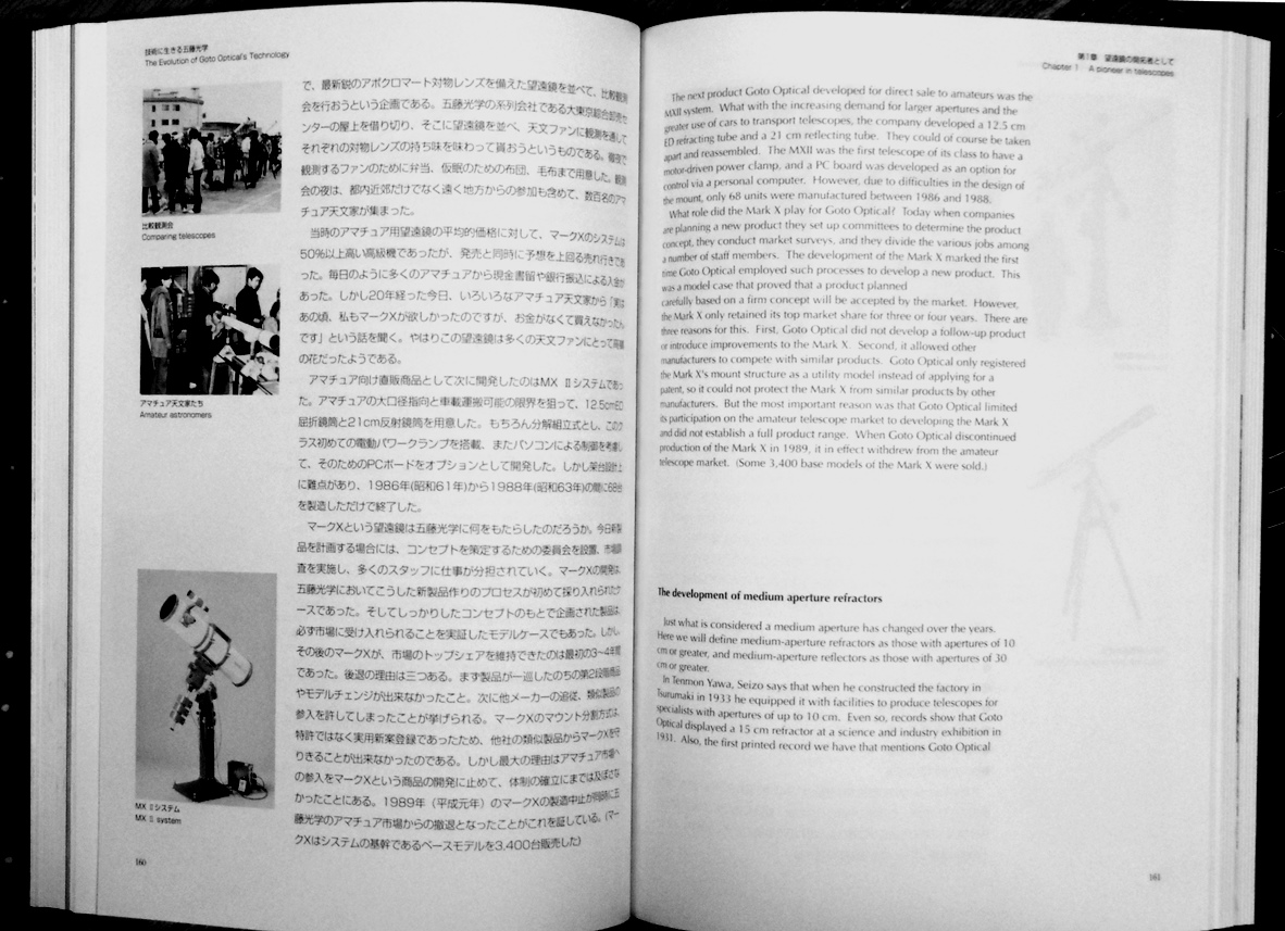 戦後の五藤光学の小型望遠鏡は、一時的に「マークX」などでアマチュア向けに大きくアピールすることはあったが、結局は理振法に始まって理振法に終わったといってよい。当初、一般の需要がまだ小さかったこともあるが、理振法の需要で事足りているあいだに一般の需要を見失ってしまったわけである。