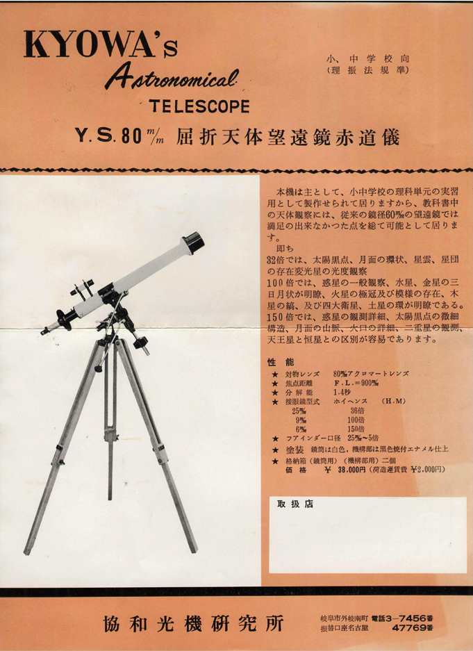 *************************************************************** 日本テレスコープ社、高橋製作所、アストロ光学、山本製作所のもっと詳しい関係を知りたいものです。 |
