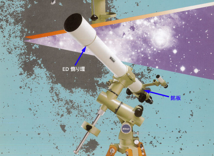 またこれも不確かですが、接眼筒に貼り付けている「銘板」の刻印番号(S/N) 10000番代〜はアクロマ−ト仕様、 60000番代??〜はED仕様と35〜40年前に聞いた記憶がうっすらあります。 近年物忘れがひどいカトリ−ヌ情報でした。
