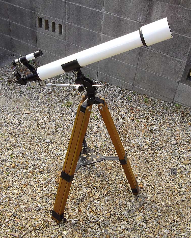 皆さん、こんにちは。"つきこ"です。私のところにケンコーKA-608(Kenko ALTAZIMUTH TELESCOPE)がやってきました。学生の頃にはKA-607を使って木星を見ていましたが、KA-607は引っ越しでどこかに行ってしまいました。ここの記事を見てから、もう一度、使ってみたいという思いが湧いてきていました。KA-608はf=800mmなので、ベランダでの取り回しは良くないです。接眼部は31.7mmサイズに適応できるようにしました。Or-4mmで200倍で見ても、像の崩れもありません。作りも丁寧です。