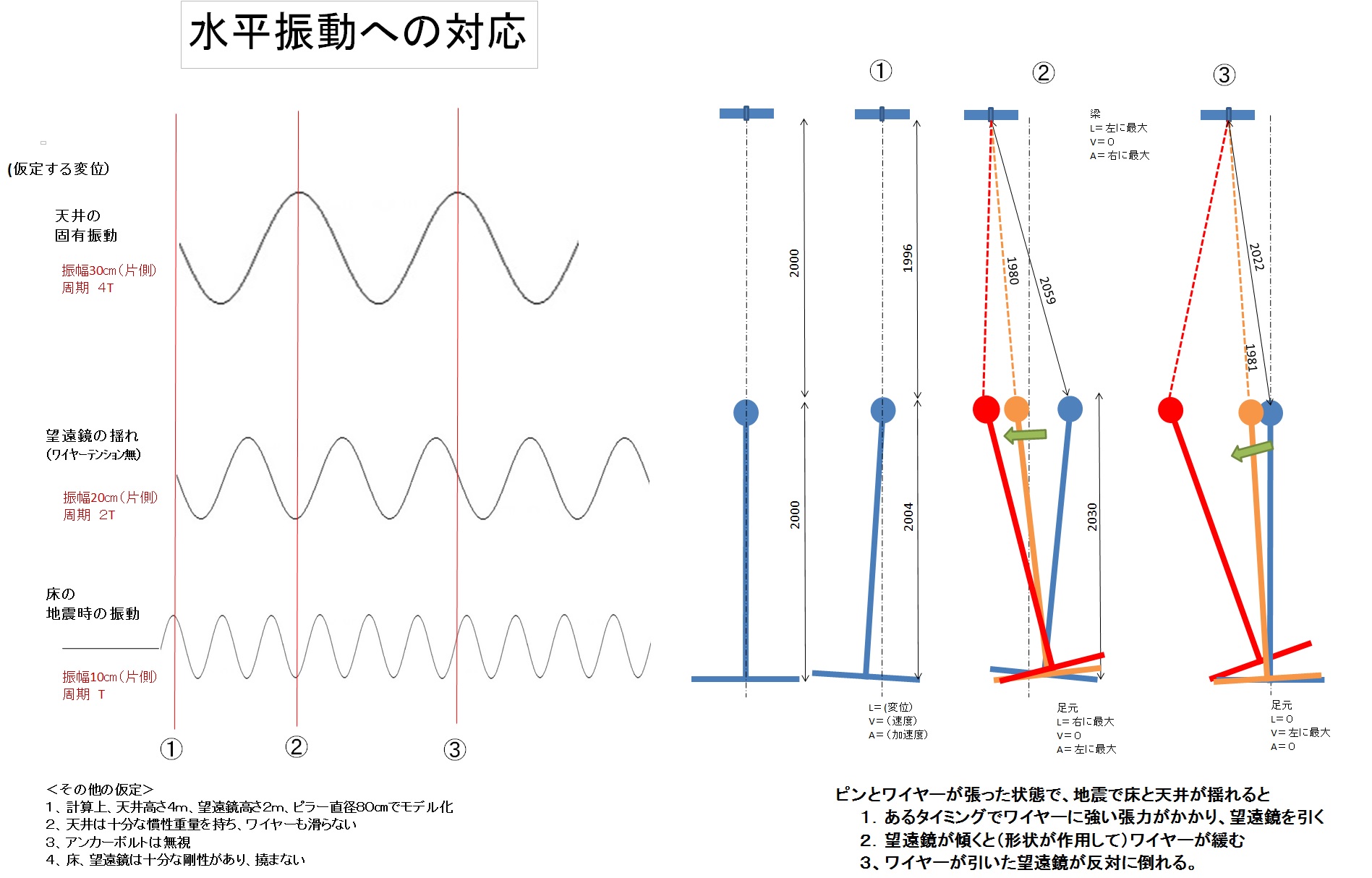 望遠鏡の構造と重心、プール棟の構造と、まずは少しでもましにするため、天井の梁にワイヤーで止めることにしているとのことを相談しました。