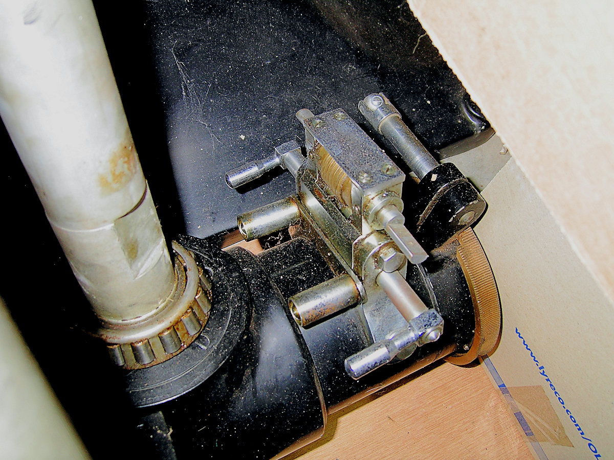 で、これは、運転時計はシンクロナスモーターですか? 私たちの使ったのは、錘式でウォーム軸の西側だったと思いますが差動ギアを動かすためのプーリーがあってそれに1.5〜2mほどの皮のコード(足踏みミシンのベルトのような)を引っかけて赤経微動をしていました。