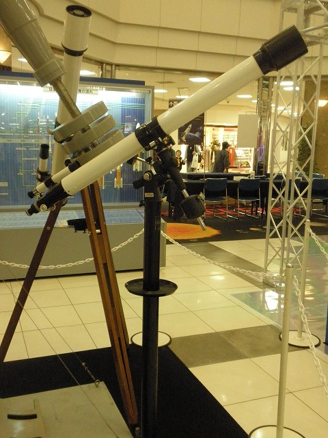 久しぶりの書き込みになってしまいました。ガラクマさんもおっしゃっていますが、この状態での展示は正直もったいないですね。この状態だとなんか(古い)望遠鏡がいっぱい置いてあるで終わってしまっているように感じました。1台ごとにキャプションのボードは、なぜこのイベントに望遠鏡を展示するに至ったかの狙いとかも掲示しないとただの置物ですよね。イベントの性格上現在購入できる機材を展示すべきではないのか等々・・・・すみませんちょっと出すぎました。