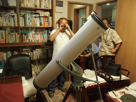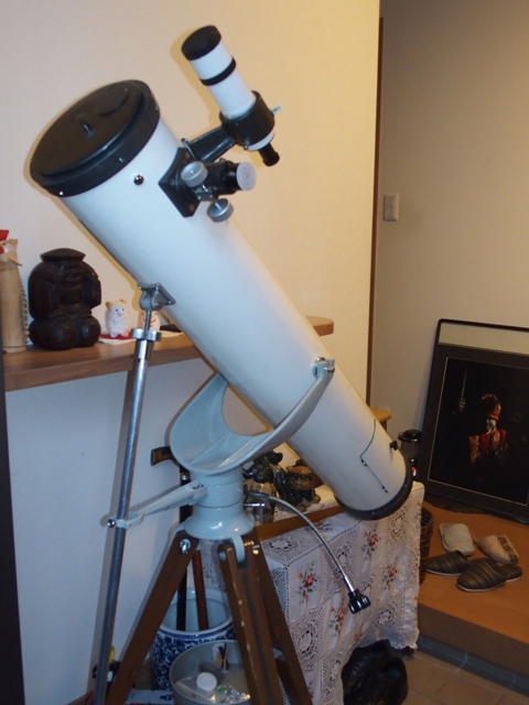 架台、鏡筒、ファインダーと3名の後輩が手持ちパーツを持ち寄り、また加工にはご存じI部長が男気を見せてくれて、こうして1台の望遠鏡ができあがりました。