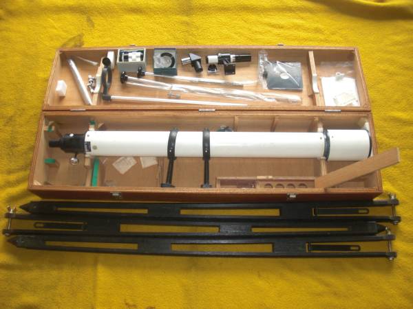 この鏡筒に、この赤道儀がくるか!。この三脚か。と学校の理科室の望遠鏡を見るのは楽しいものです。