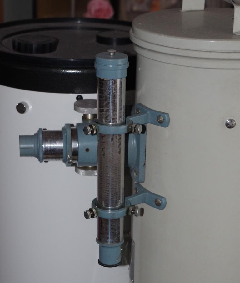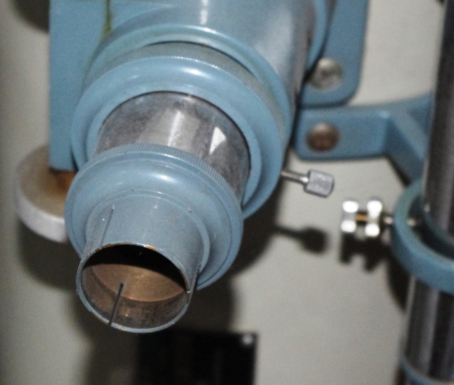 このタイプ、今まで2台くらいしか見たことがありません。1台は西村製作所さんの倉庫で、ヘリコイド接眼部は外されて無い状態でした。恐らく公共天文台修理用に部品取りされたのではないかと思われます。