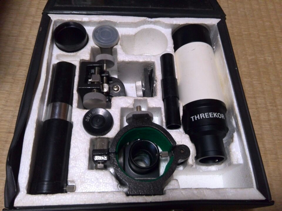 こんばんは! 連休明けで新入荷を期待して巡回行ってきました! 一件目で、な、なんとケンコー130N反射(サターンを小さくしたような赤道儀)とミザール経緯台が2台! 一気に3台もあるじゃありませんか! ぐらぐらっと来つつも我慢して次の店へ、 そしてついにその日は来ました!が? あれ?御三家ではないような、、しかも顕微鏡用のアイピース付き(シマズ製) しかし、見え味は明らかに、、なんと言うか雨でぬれたガラス越しのような風景が! 親戚でしょうか?