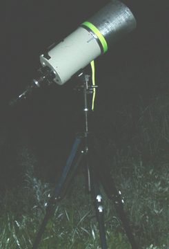 をを、じゃあ私の。2003年、8月に九州を旅歩いたときの遠征セット。インテスMK67です。撮影地は阿蘇の麓ですが曇ってアジャパ〜。鹿児島の開聞岳まで行った際には若干晴れまして、火星を見たりしたのですが、近所の花の促成栽培の明かりがいきなり点灯し始め、泣きながら逃げ惑ったという思い出があります。(笑)