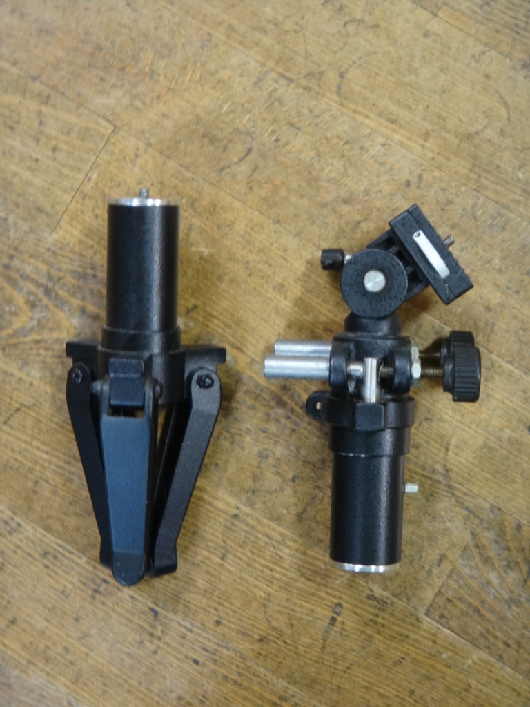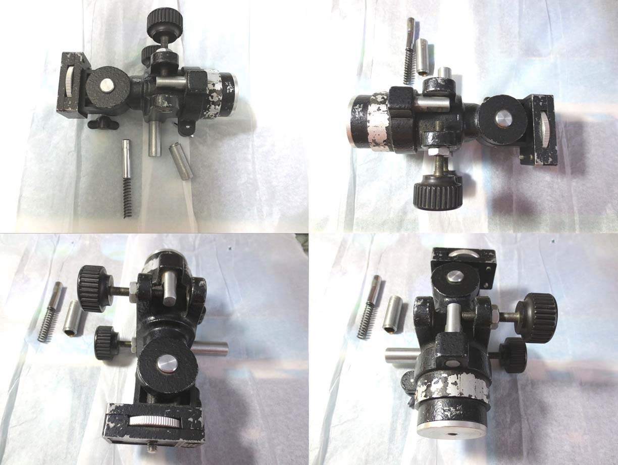 家の五藤テレパックのスプリングハウスも入手時には壊れて紛失という有様でした。幸い、ミザールの部品がそのまま流用できたので復活させられました。でも、この部分は通常はユーザーが緩めることはないので、スリ割りクランプ状の治具で締めたのではないかと思います。 |